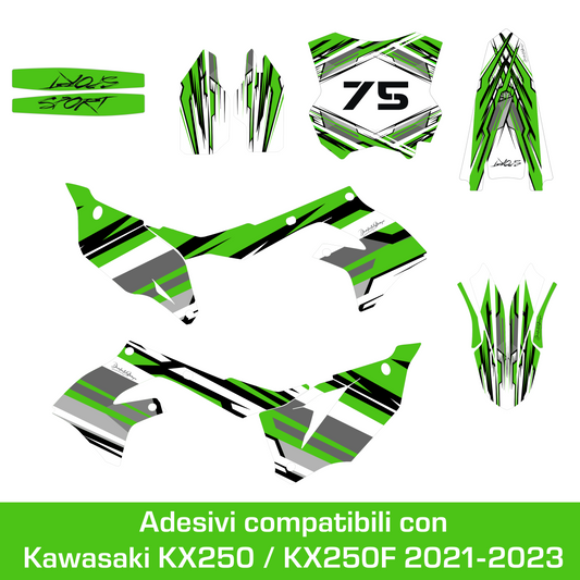 Kit Grafiche Compatibili con Kawasaki KX 250 (2021-2023) KXF 250, Adesivi Motocross Completi Professionali, Stickers KXF 250 M0343