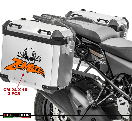DualColorStampe Set 2 Adesivi Valigie Moto alluminio SKULL Adventure Trail off Road Sport 4x4 Racing stickers valigia TESCHIO COD. M0310