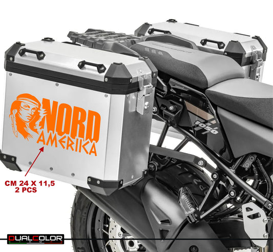 DualColorStampe Set 2 Adesivi Valigie Moto alluminio Adventure Trail off Road Sport 4x4 Racing stickers valigia NORD AMERIKA COD. M0309
