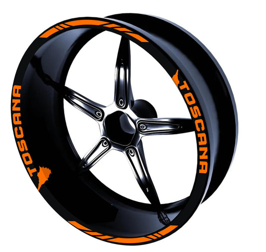 DualColorStampe Stickers Adesivi Set Completo di Cerchi Strisce per Moto per 2 Ruote da 17'' pollici strips Design Racing regione TOSCANA D0120
