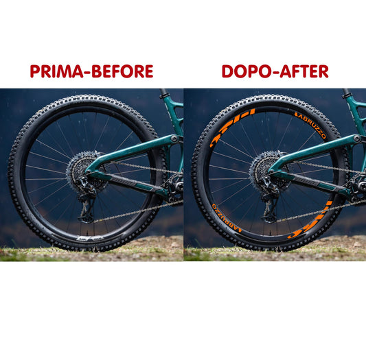 DualColorStampe® Adesivi Cerchi Bici MTB 26'' 27,5'' 28-29'' Pollici | Stickers Ruota Mountain Bike Colorati, Autoadesivi Impermeabili | Cod. B0204