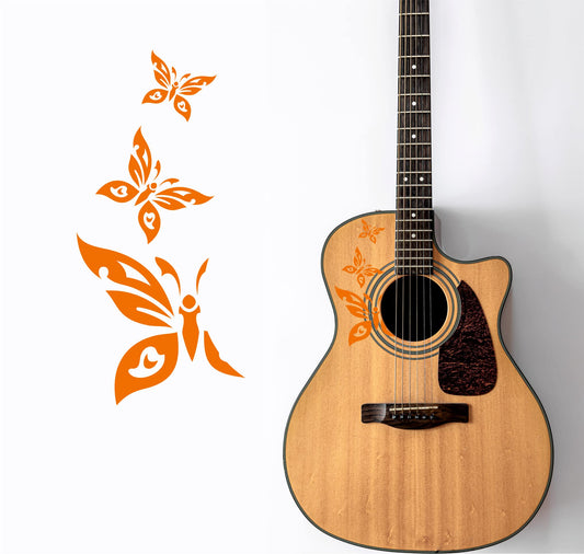 DualColorPrints Aufkleber mit Schmetterlingsmuster für klassische Akustikgitarre (3-teiliges Set) Gitarrenaufkleber – X0005