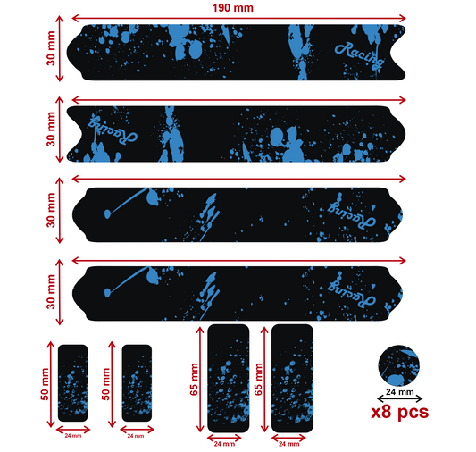 Kit 16 Adesivi per Bici Nero e Blu Chiaro – Stickers Protezione e Decorazione Telaio MTB, Corsa, Fat Bike ed E-Bike | DualColorStampe B0218