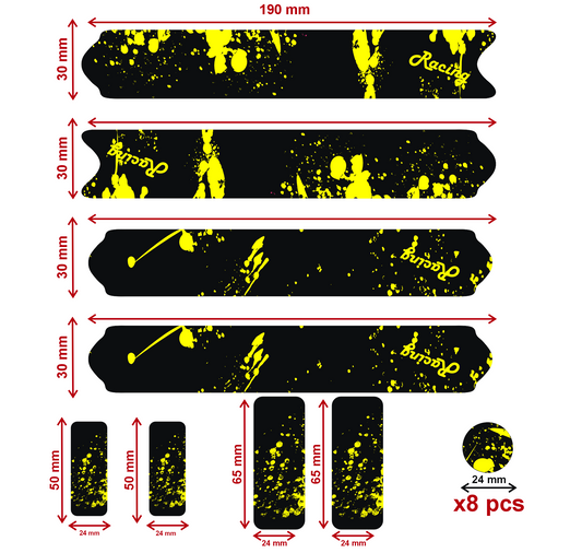 Set 16 Adesivi per Bici Nero e Giallo – Stickers Protezione e Decorazione Telaio MTB, Corsa, Fat Bike ed E-Bike | DualColorStampe B0220