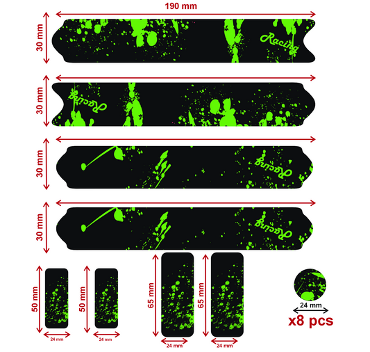Kit 16 Adesivi Protettivi Bici DualColorStampe Nero e Verde | MTB, Corsa, Fat Bike, E-Bike B0219