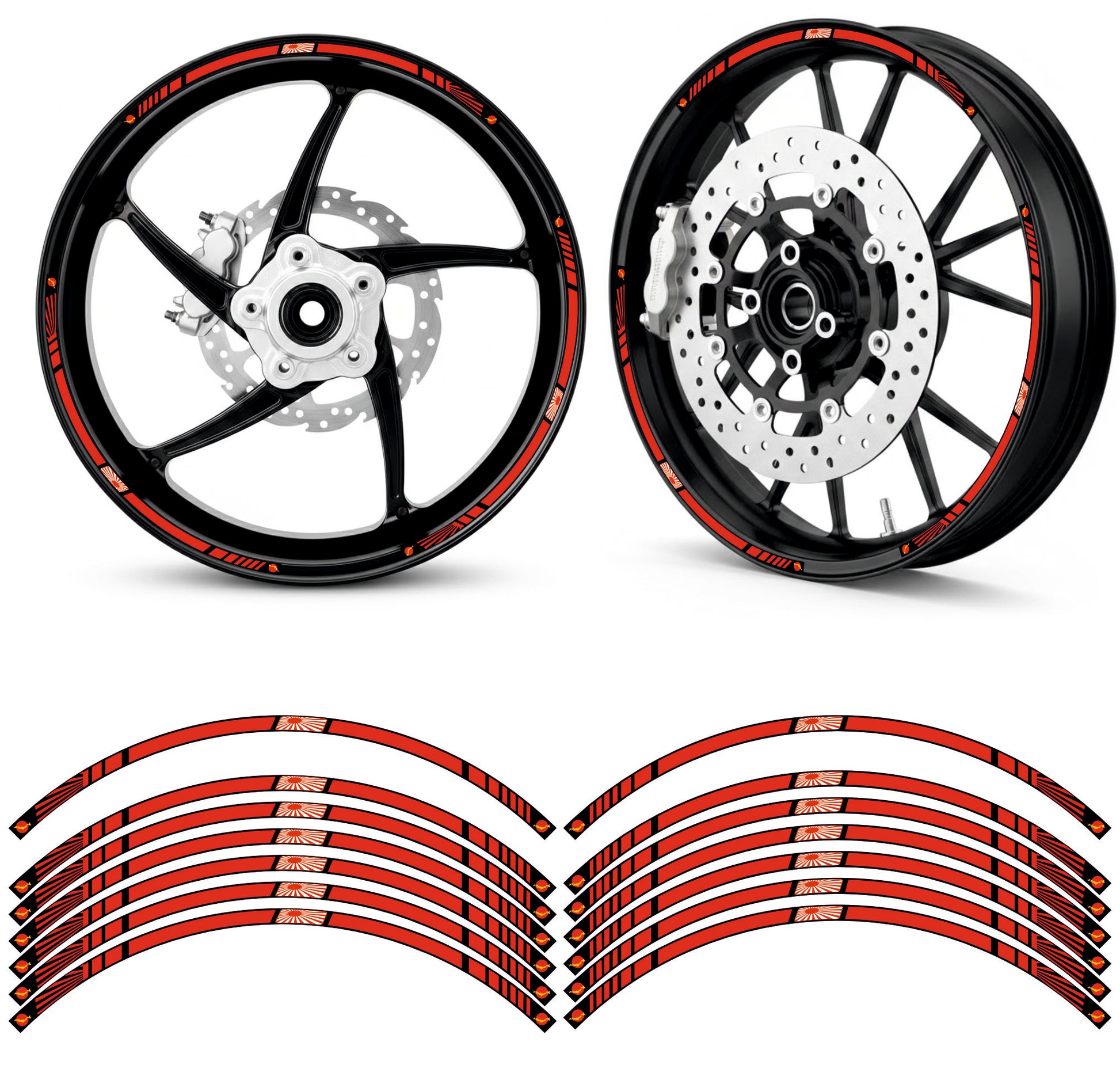 Kit 12 adesivi cerchi ruote Moto (3 adesivi per lato) Bandiera Giapponese Racing filetto strisce cerchione universali per ruote da 17" Pollici D0160