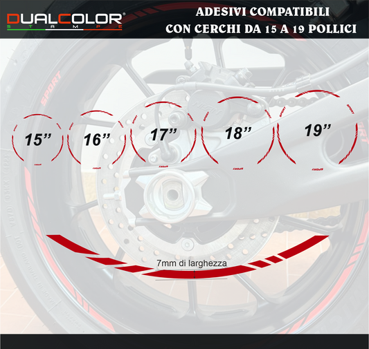 DualColorStampe Confezione Adesivi Set Completo di Cerchi Strisce per Moto per 2 Ruote da 15'' pollici strips Design RACING Sportivo COD.D0080