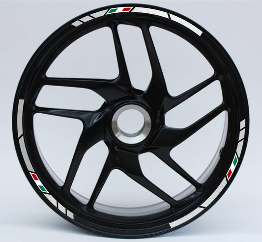 DualColorStampe Confezione Adesivi Set Completo di Cerchi Strisce per Moto per 2 Ruote da 15'' pollici strips Design bandiera italiana COD.D0085
