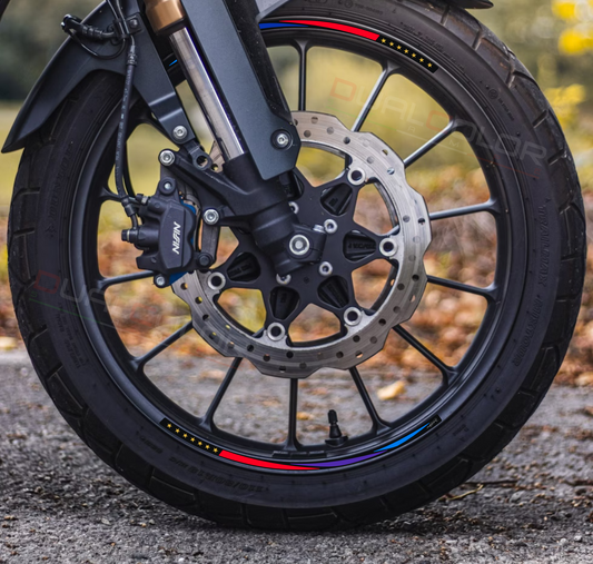 Set di Strisce Cerchi Moto per 2 Ruote da 15" a 19" Pollici | Adesivi Ruote Moto | Adesivi Cerchi Moto Resiste a Pioggia e Sole | Design Racing D0124