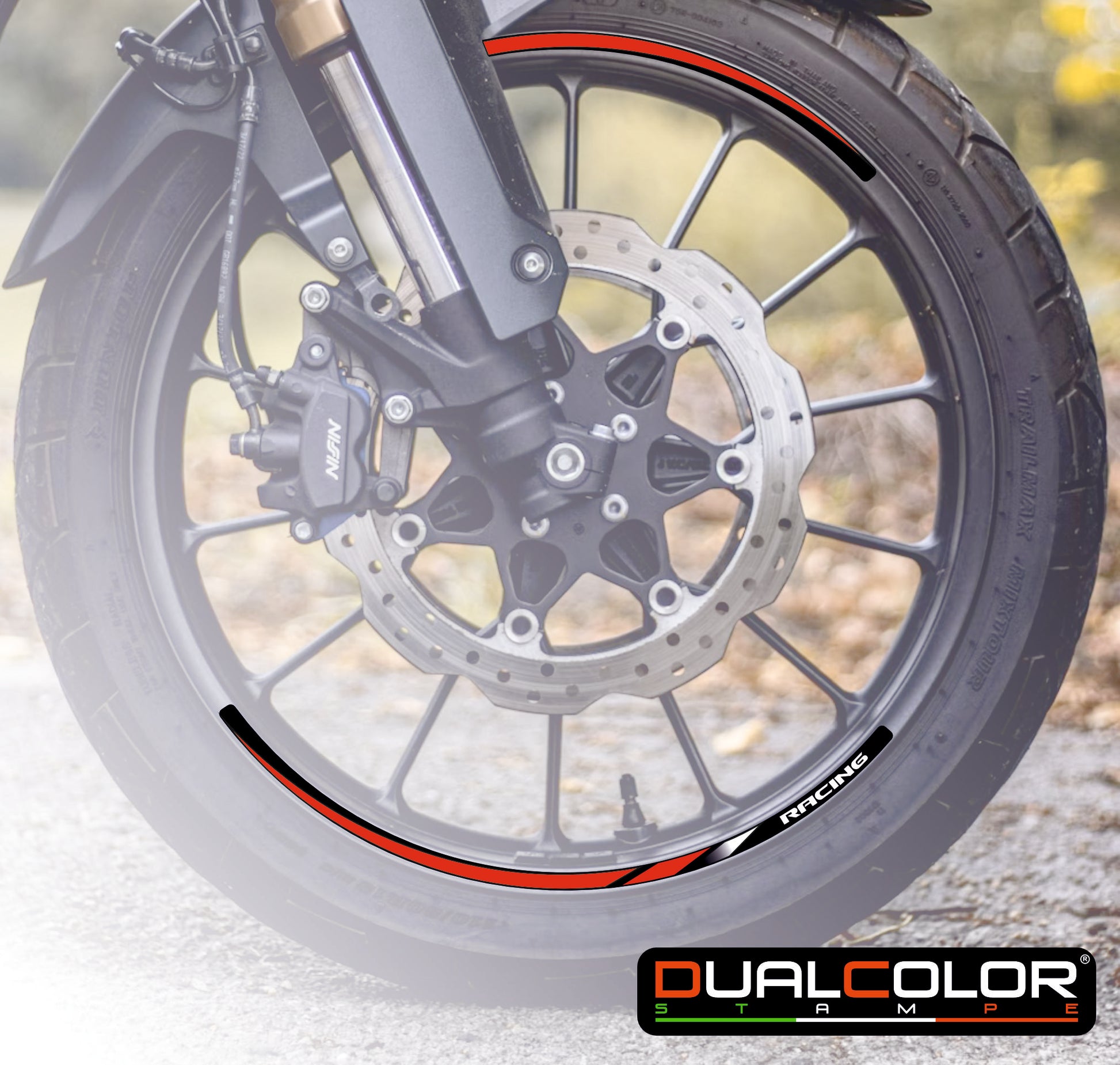 Adesivi profili Cerchi Moto "RACING ROSSO" - Stickers ruote 15-19 pollici - PVC Air Free Professionale D0165