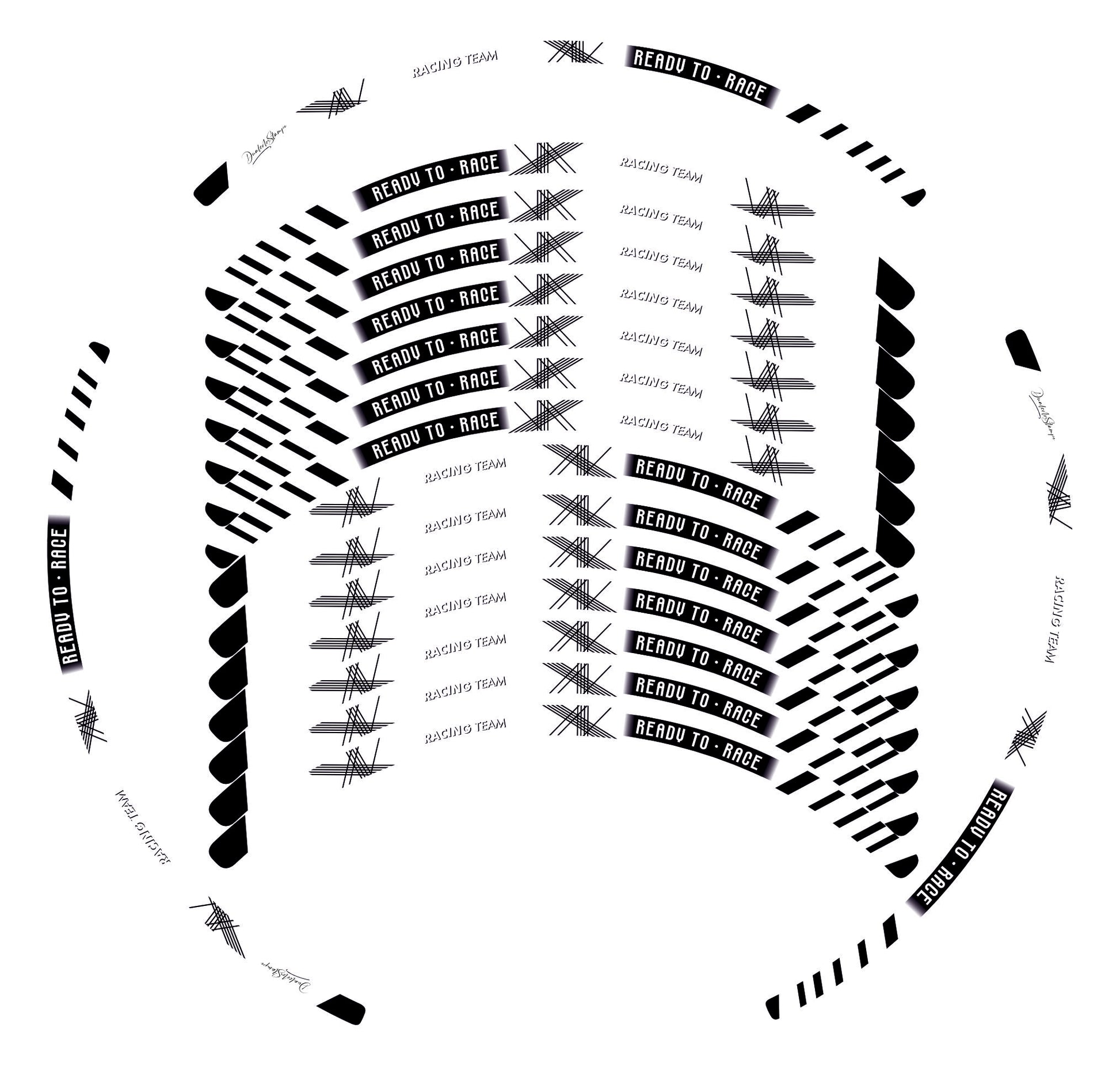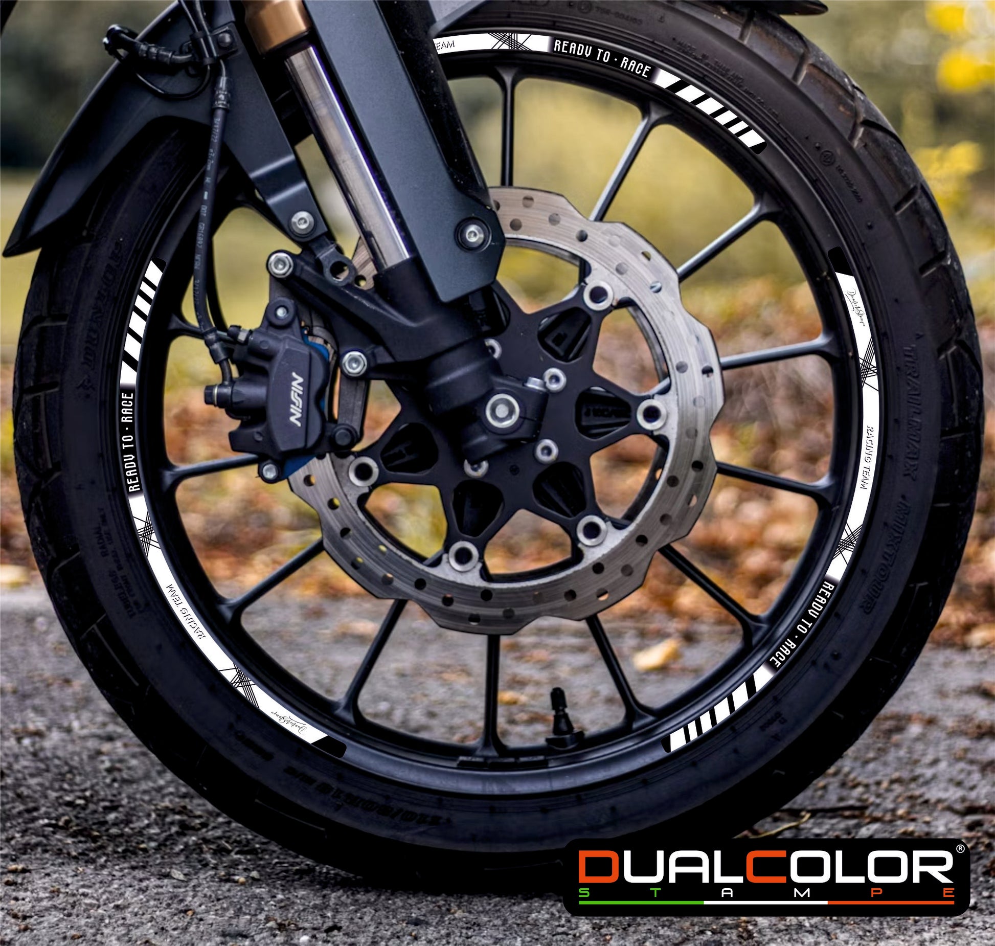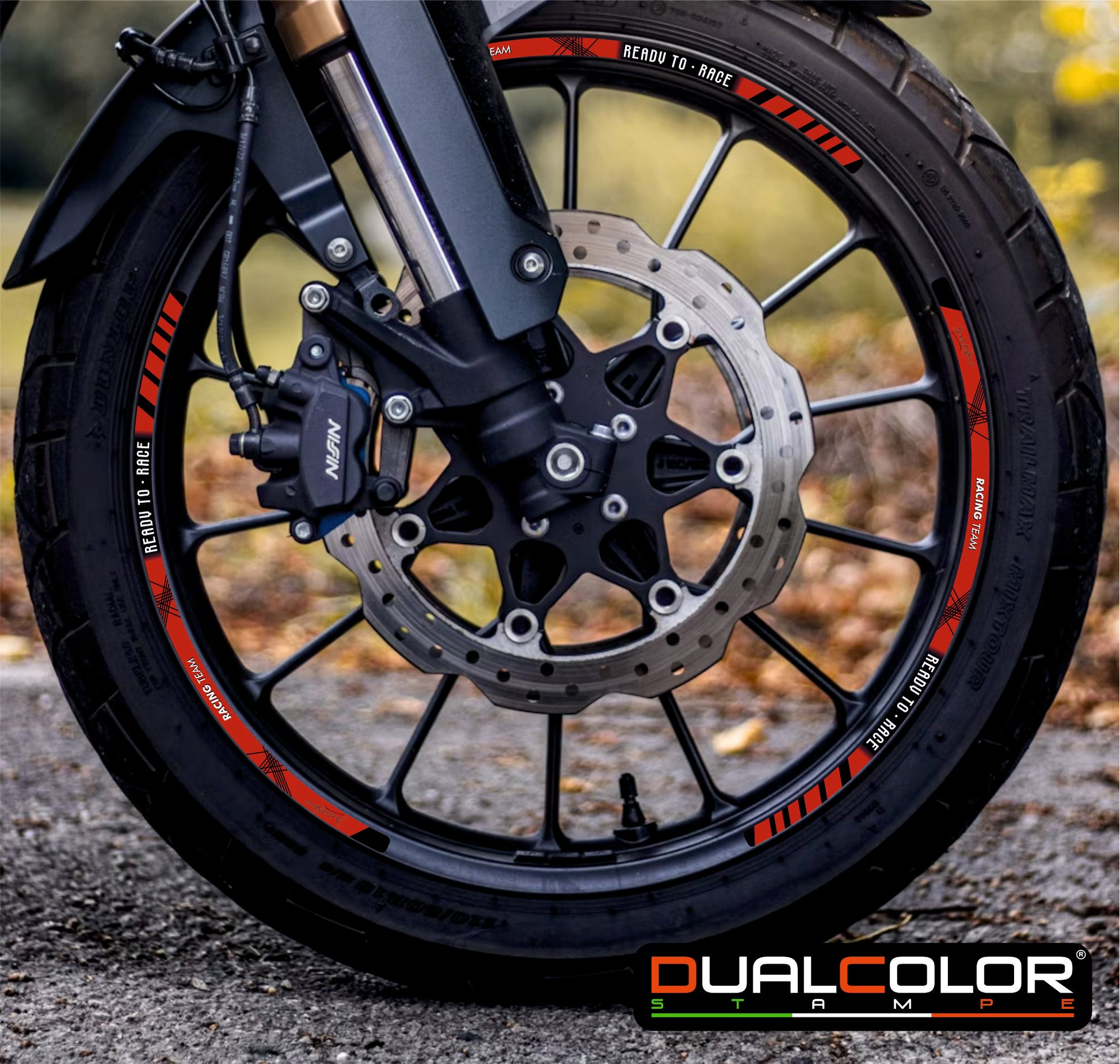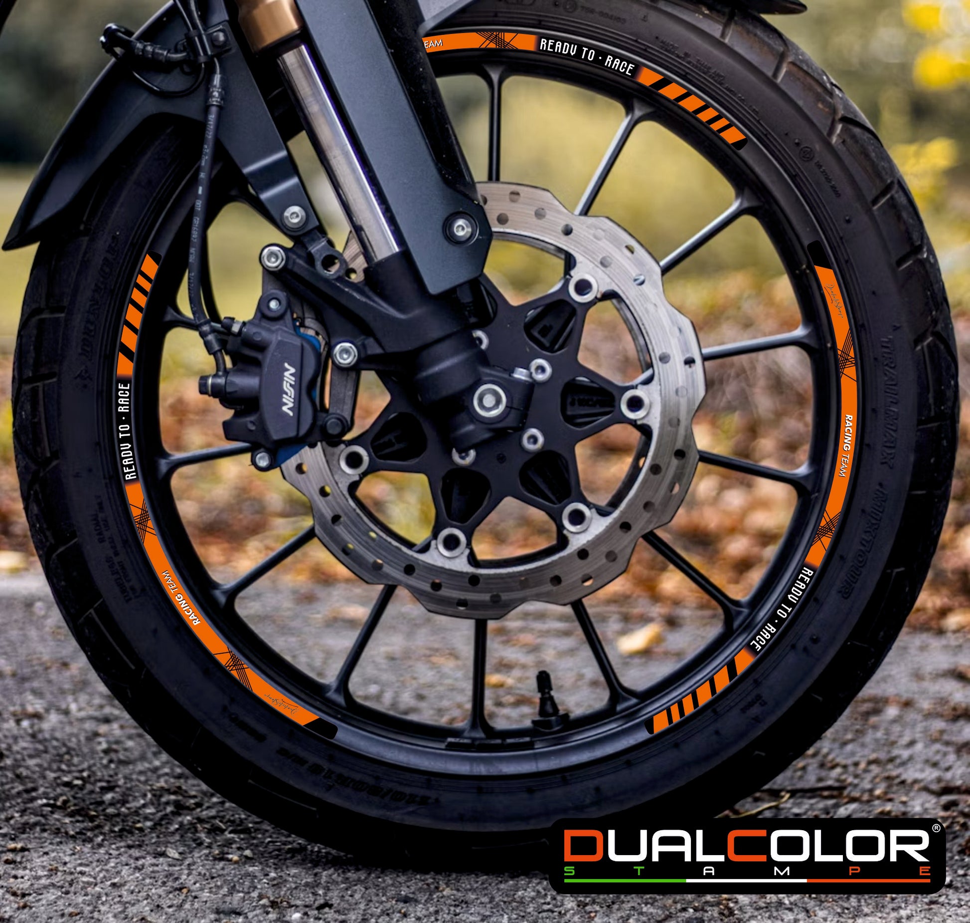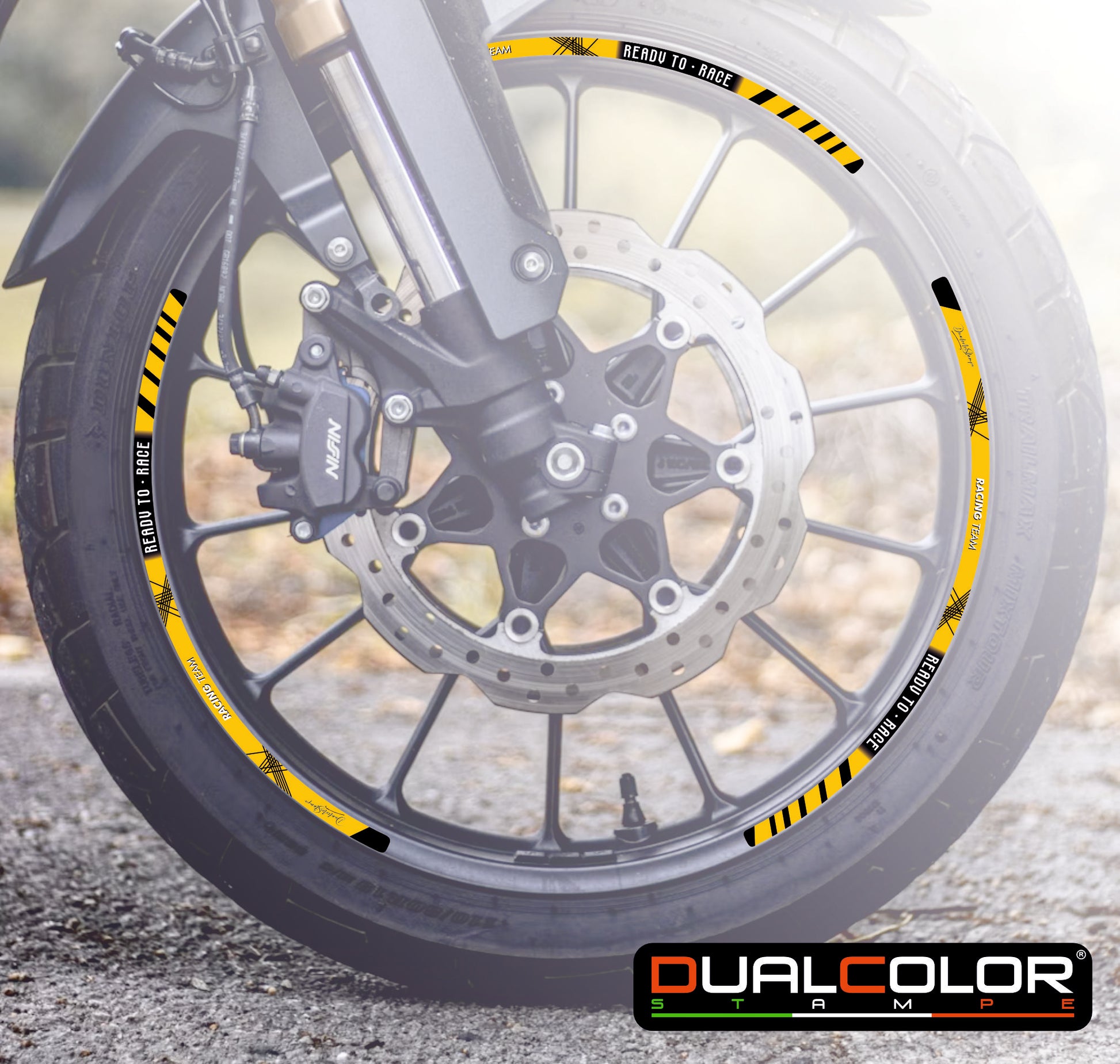 Kit Adesivi Cerchi Moto "RACING TEAM" - Stickers ruote 15-19 pollici - PVC Air Free Professionale D0163