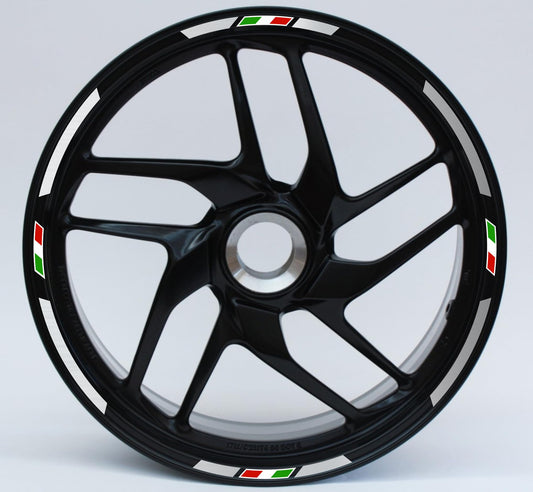 DualColorStampe Confezione Adesivi Set Completo di Cerchi Strisce per Moto per 2 Ruote da 15'' pollici strips Design Bandiera Italiana COD.D0087