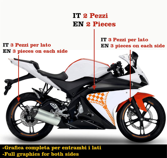 Autocollants DualColor Prints compatibles avec Yamaha YZF-R125 R125 (2014-2018) Rim Stripes 17 '' Inch + Carénage moto autocollants COD.M0240