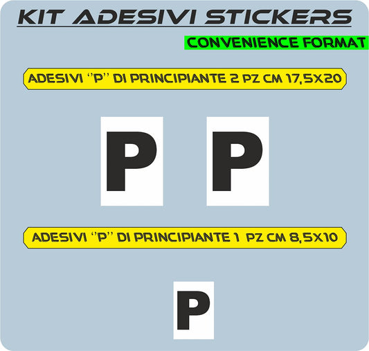 Autocollant "P" Débutant, Lot de 1 Pièces Avant + 2 Pièces Arrière COD.0084