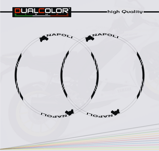 Confezione Adesivi Set Completo di Cerchi Strisce per Moto per 2 Ruote da 17'' pollici strips Design Racing NAPOLI D0116