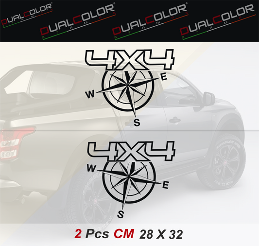 DualColorStampe® STICKERS VOOR PICKUP 4X4 OFF ROAD KOMPAS WINDROOS (2 STUKS RH-LH) Off-road accessoires stickers decal auto 0407