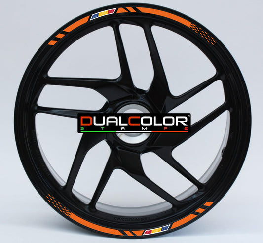 DualColorPrints Pack Stickers Complete set velgen strepen voor motorfietsen voor 2 17 '' inch wielen Sportief ontwerp COD.D0060